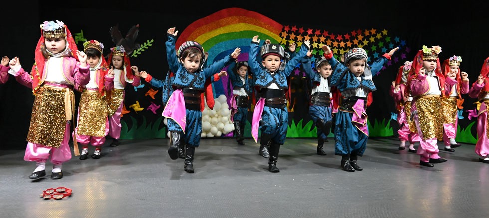 Minik öğrenciler programda, öğretmenleriyle hazırladıkları gösterileri sundu. Giydikleri kostümler ve hazırladıkları sahne dekorları ile renkli görüntüler oluşturan minik öğrenciler, izleyenlerden büyük alkış topladı.