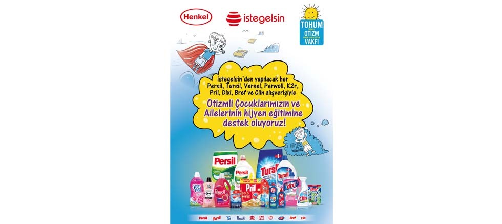 Otizmli bireylerin zorlu ve uzun süreli eğitim konularından tuvalet, duş alma, tırnak kesme ve kişisel hijyen gibi öz bakım becerilerinde doğrudan veya dolaylı yoldan desteklenmeleri için Henkel ve istegelsin işbirliği ile geliştirilecek iş modelinde; istegelsin üzerinden satın alınacak her Persil, Tursil, Perwoll, Vernel, Pril, Bref, Dixi, Clin ve K2R ürünü ile otizmli bireylerin öz bakım becerilerini öğrenmesine ve hayatın her aşamasına bağımsız bireyler olarak dahil olmalarına destek olacak.