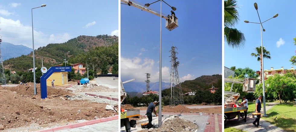 Fen İşleri Müdürlüğü ekipleri, ilçe genelindeki tüm parklarda aydınlatma çalışmaları yapıyor.