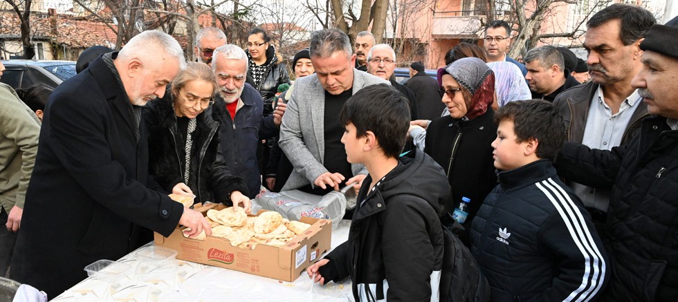 Belediye Başkanı Şükrü Başdeğirmen ve eşi Şadiye Başdeğirmen, Hızırbey Camii önündeki programın ardından Doğancı Mahallesi Sosyal Tesisleri önünde muhtarlık tarafından organize edilen helva, pide dağıtımına katılarak vatandaşlara hayırlı kandiller dileklerini iletti.