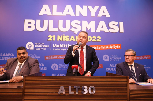 Antalya Büyükşehir Belediye Başkanı Muhittin Böcek, Alanya’da muhtar ve STK temsilcileriyle bir araya geldi. Alanya’nın 102 mahallesinin hizmetinde olduklarını, dönemi kurtarmak için değil, projelerle kalıcı eserler bırakmak istediklerini belirten Başkan Muhittin Böcek, “Görsel yatırım yapmıyoruz. A’dan Z’ye Antalya’ya da, Alanya’ya da yapılması gereken projeleri yapıyoruz” dedi.