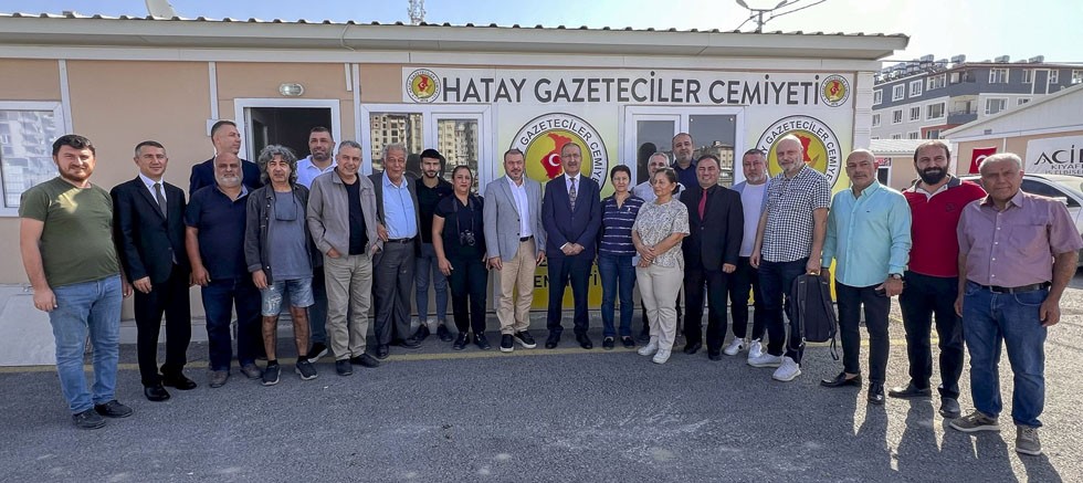 Hatay Valisi Mustafa Masatlı’yı ziyaret eden Erkılınç, Hatay Gazeteciler Cemiyeti’nin geçici olarak faaliyet gösterdiği prefabrik işyerinde süreli yayınların temsilcileriyle buluştu.