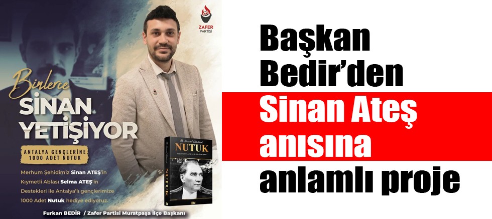 Antalya'da Zafer Partisi Muratpaşa İlçe Başkanı olan Furkan Bedir, ülkücü şehit Sinan Ateş'in anısına öğrencilere Atatürk'ün Nutuk kitabını dağıttı. Bedir, Türk milliyetçilerinin gençlerin ve öğrencilerin yanında olduğunu ve Atatürk çizgisinden gençlerin ayrılmaması gerektiğini vurguladı.