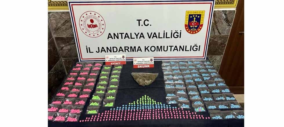 Antalya İl Jandarma Komutanlığı İsth Şb Md.lüğü ve Kepez İlçe J.K.lığı ekipleri tarafından Antalya İli Kepez ilçesine şüpheli bir şahsın elinde bulundurduğu uyuşturucu (Ekstacy hap ve skunk) maddeleri piyasaya süreceğinin tespit edilmesi üzerine şüpheli şahıs yakalandı.