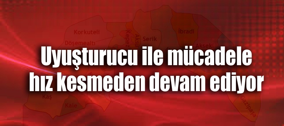 "Antalya Cumhuriyet Başsavcılığı’nın talimatları doğrultusunda; Emniyet Müdürlüğü birimlerimizce ilimiz genelinde uyuşturucu madde arzını önleyerek geleceğimizin teminatı olan gençlerimizi, kötü alışkanlıklardan korumak, il genelinde uyuşturucu maddelerin kaynağının kurutulması, ticaretinin ve kullanımının engellenmesi amacıyla uyuşturucu madde naklederek ticaretini yapan şahıs ve grupların yakalanmasına yönelik yürütülen çalışmalarda ;