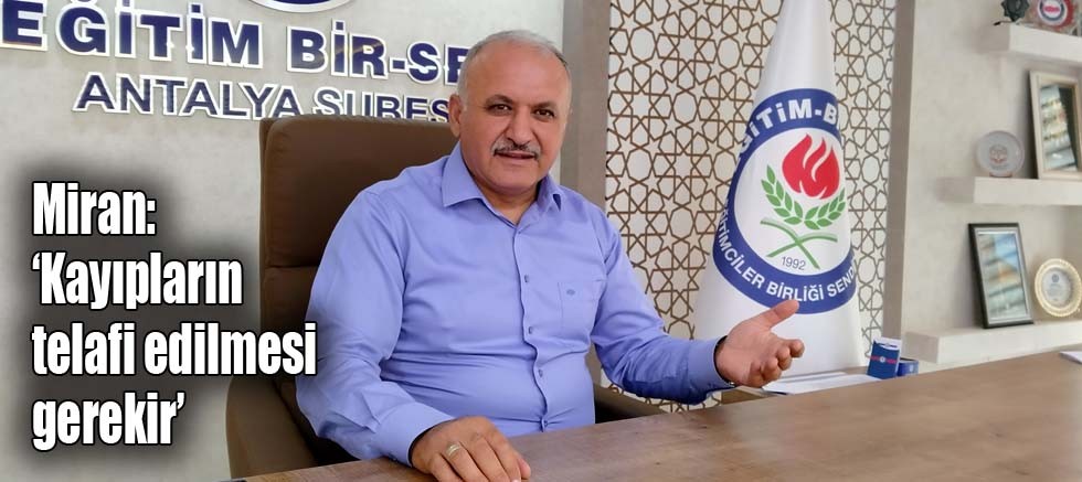 Eğitim Bir Sen Antalya Şube Başkanı Eyüp Bülent Miran, Asgari ücrete yapılan yüzde 50 zammın ardından enflasyonun yol açtığı kayıpların memurlar açısından da telafi edilmesi gerektiğini belirterek, “Memurlara seyyanen zam yapılmalı, refah payı verilmeli, ilave olarak gelir vergisi yüzde 15’e sabitlenmeli, ek gösterge ile ilgili eksikler giderilmelidir” dedi.