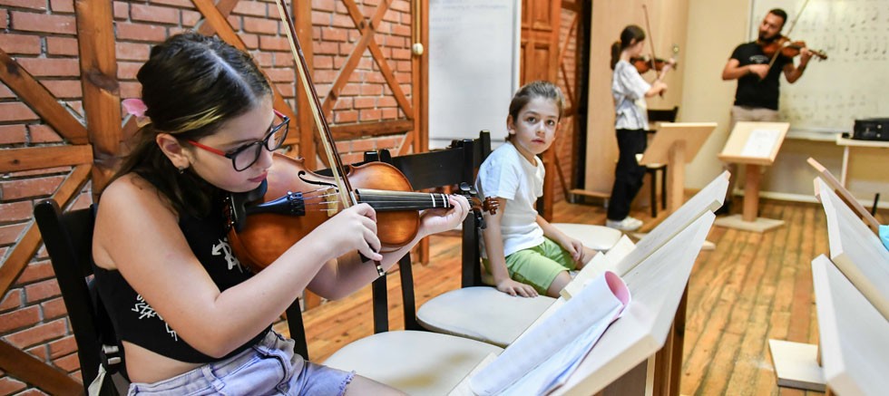 Muratpaşa Belediyesi’nin çocukları bilgisayar başından kaldıran, cep telefonlarını bir kenara bıraktıran Doğa Kampı’nın yanı sıra onların yaz tatilinde gelişimlerini destekleyecek yaz kursları da devam ediyor. Kurslar bu dönem, Değirmenönü Kültür Merkezi, Şirinyalı, Perge, Meltem ve Çağlayan sanat merkezlerinde açıldı. Gitar, bağlama, keman, halk dansları, salon dansları, yaratıcı drama, uygulamalı tiyatro, darbuka, solfej, resim, taş boyama, seramik ve heykel branşlarında açılan kurslara 982 öğrenci devam ediyor.