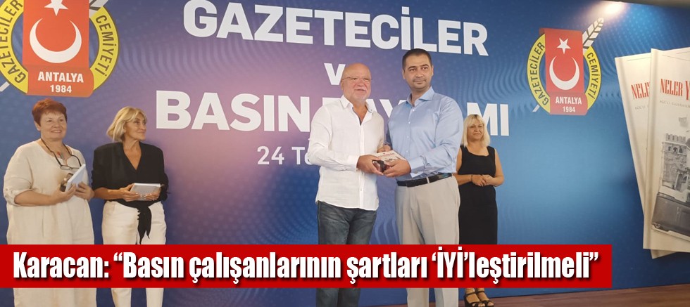 Programın ardından açıklamalarda bulunan İYİ Parti Antalya İl Başkanı Karacan ise basın sektörünün sorunlarına ve çözümlerine dikkat çekti. Başkan Karacan, “Kentimizin ve ülkemizin her noktada gelişimi için haberleriyle katkı koymayı hedefleyen tüm gazetecilerimizi tebrik ediyor, bu özel günlerini kutluyorum. Böylesine özel bir günde, böyle bir kitabın çıkarılmasında emeği geçenlere de teşekkür ediyorum. Basın, demokrasilerin olmazsa olmazıdır. Böylesine önemli bir görevi yerine getirmek isteyen basınımıza maalesef ‘Dezenformasyon’ gibi çeşitli yasal başlıklar altında sansür uygulanmakta. Dünya basın özgürlüğü sıralamalarında Türkiye’nin durumu ortadadır. Bir an önce basın üzerindeki tekelleşme ve sansür ortadan kaldırılmalı. Ayrıca basın çalışanlarının yaşadığı sorunları biliyoruz. Yazılı, görsel ve işitsel medyanın ayakta kalmak için verdiği mücadelenin farkındayız. Her yıl 24 Temmuz’da kutlanan ‘Gazeteciler ve Basın Bayramı’nın gerçek manada kutlanabilmesi için öncelikle basın özgür kılınmalı ardından da basın çalışanlarının şartları ‘İYİ’leştirilmeli” dedi.