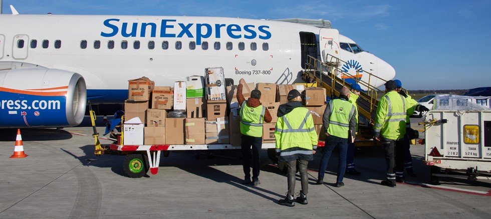 Almanya ile Türkiye arasında SunExpress öncülüğünde kurulan hava köprüsü kapsamında bugüne kadar 450 ton yardım malzemesi deprem bölgesine ulaştırıldı. ‘Birlikte Destek Oluyoruz’ inisiyatifiyle bölgeye toplam 1000 ton yardım malzemesi taşınması öngörülüyor