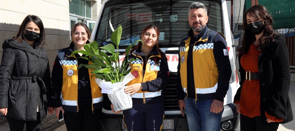 Sağlık çalışanlarına çiçekli kutlama