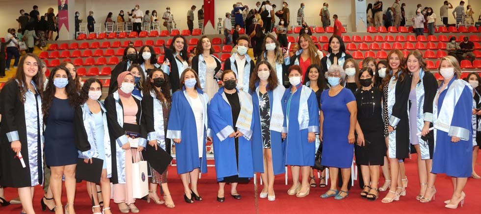 Törende konuşan Hemşirelik Fakültesi Dekanı Prof. Dr. Zeynep Özer, “Sevgili öğrenciler, hayatımız boyunca çeşitli duygular yaşadığımız anlar olur. Bugün ise hep birlikte hayat boyu unutamayacağımız çok özel anları yaşıyoruz. Pandemi dönemini de kapsayan dört senelik keyifli, verimli, bir o kadar da zor ve meşakkatli  eğitimimizi tamamlayarak bugün Türkiye’nin en güçlü fakültelerinden birinden hemşire olarak mezun olmanın haklı kıvancını yaşadığınızı düşünüyorum. Üniversite yaşamında öğrendiğiniz bilgi ve becerileri sürekli geliştirerek insanlığa hizmet için unutulmayacak çalışmalara imza atmanızı temenni ederim.” ifadelerini kullandı. 2020-2021 Eğitim Öğretim dönem birincisi hemşire Zahide Uçar’ın Rektör Vekili Prof. Dr. Murat Turhan’dan mezuniyet belgesini aldığı tören, mezun hemşirelerin eğitim öğretim hayatları boyunca yaşadıkları özel anların fotoğraflarından oluşan slayt gösterisi ile devam etti. Bu yıl 218 hemşirenin mezun olduğu tören mezun hemşirelerin geleneksel kep atma töreniyle son buldu.