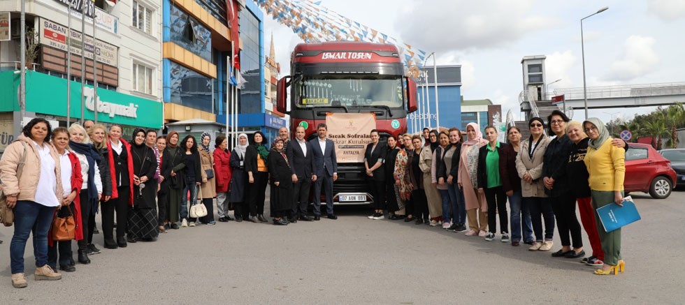 22 Şubat’ta Genel Merkez Kadın Kolları Başkanlığı tarafından başlatılan ve 70 ilimizin de katılımıyla desteklenen “Sıcak Sofralar Tekrar Kurulsun Mutfak Seti” kampanyasında toplanan mutfak malzemesi, hijyen seti ve oyuncaklar yüklü 1 adet tır AK Parti Antalya Kadın Kolları tarafından Hatay-Antakya’ya gönderildi. İl Kadın Kolları Başkanı Ayşe Keyik Yılmaz ve kadın kolları teşkilatı da bölgeye giderken burada ziyaretlerde bulundu ve ihtiyaç sahibi depremzedelere yardımları ulaştırdı.
