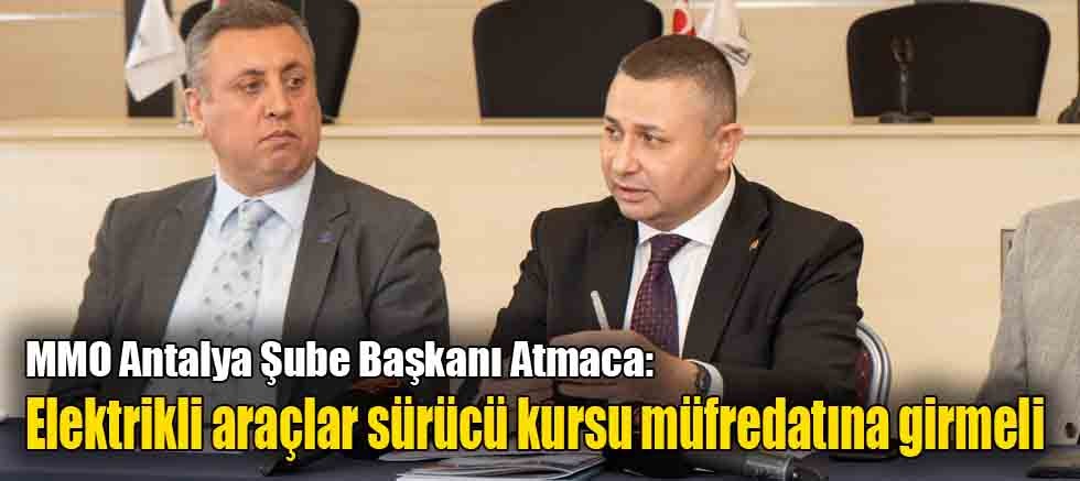 Konuya dikkati çeken MMO Antalya Şube Başkanı Prof. Dr. İbrahim Atmaca, elektrikli araç sürücülerinin elektrikli araçlara ne kadar aşina olduklarının belirsiz olduğuna vurgu yaparak, “Mevcut motorlu taşıt sürücüleri kursu araç tekniği ders programı incelendiğinde, kapsamın içten yanmalı motorlu otomobil kullanıcıları için oluşturulduğu görülmektedir. Güvenli kullanım şartlarının oluşması için sürücü kursu müfredatlarına ivedilikle elektrikli araçlar ile ilgili kapsamlar eklenmeli, mevcut sürücü belgesi sahipleri ise ek eğitimlere tabi tutulmalıdır” dedi.