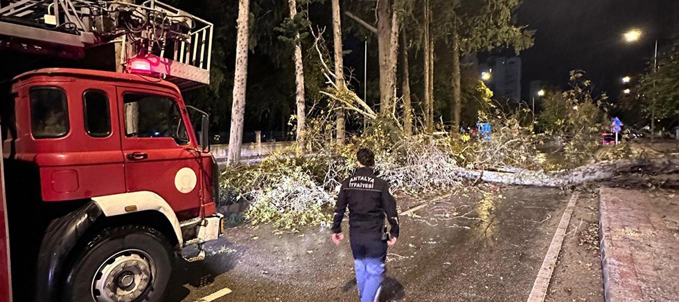 Meteoroloji Genel Müdürlüğü'nün 'turuncu' kodla uyardığı Antalya'da, Perşembe gününden bu yana etkili olan sağanak yağış ve hortum sonrası, etkili olan şiddetli fırtına yaşamı olumsuz etkiliyor. Fırtınanın saatteki hızı 70 kilometreye ulaşırken fırtına nedeniyle merkez ve ilçelerde birçok zarar meydana geldi. Fırtına çok sayıda serayı etkilerken, ağaçların devrilmesine neden oldu. Çöp konteynerleri, panjur, tabelaları yollara savuran fırtına nedeniyle teyakkuz halinde bekleyen Büyükşehir ekipleri vatandaşın yardımına koştu.