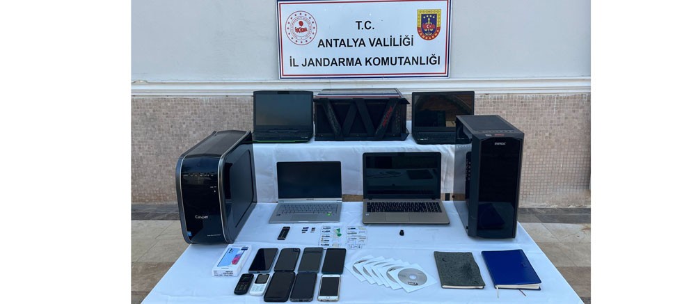 "Antalya Cumhuriyet Başsavcılığı talimatları doğrultusunda; Antalya İl Jandarma Komutanlığı İsth. Şb. Md.lüğü, Siber Şb.Md.lüğü ve Kepez İlçe Jandarma Komutanlığı ekipleri tarafından (6) şüpheli şahsın bilişim sistemlerini kullanarak dolandırıcılık yaptıkları tespit edilmesi üzerine şahısların ikametlerinde yapılan aramada;