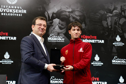 İmamoğlu’nun konuşmasının ardından, deprem bölgesinde görev yapan binlerce İBB personeli adına, farklı birimlerden toplam 18 çalışana sembolik plaketleri takdim edildi. Arama-Kurtarma ekip lideri, Avrupa Yakası İtfaiye Şube Müdürü Erdinç Turan, K9 Arama-Kurtarma ekibinden Fırat Bürçün (K9 köpeği Joker ile birlikte), Hızır Acil Danışmanı Prof. Dr. Doğaç Niyazi Özüçelik, İSKİ Risk Yönetim Şefliği’nden İbrahim Yazkan, İGDAŞ İş Sağlığı Güvenlik Şefi, Arama-Kurtarma Ekip Şefi Hüseyin Yıldırım, Zabıta Memuru Oktay Öksüz, Veteriner Teknikeri Buğra Burakhan Acar, Halkla İlişkiler görevlisi Mahmut Fatih Uzunyaşa, Sağlık ve Hıfzıssıhha Müdür Yardımcısı Oğuz Başaran, Elektronik Sistemler Müdürlüğü, Wi-Fi Ekip Şefi Kasım Filiz, Medya A.Ş. Genel Müdür Yardımcısı Sibel Karakurt, muhabir Betül Uzundere, BOĞAZİÇİ A.Ş. Destek Hizmetleri Personeli Süleyman Yıldırım, İSTGÜVEN Özel Güvenlik Görevlisi Cüneyt Gürsu, KİPTAŞ Kontrol Amiri Kamuran Ekmen, Metro A.Ş. Uzman Bakım Mühendisi Aslen Edinç, Şehir Hatları Kaynak Ustası Oktay Sezer ve Spor İstanbul Mobil Teknik Hizmetler Sorumlusu İbrahim Alveroğlu, plaketlerini İmamoğlu’nun elinden aldı.