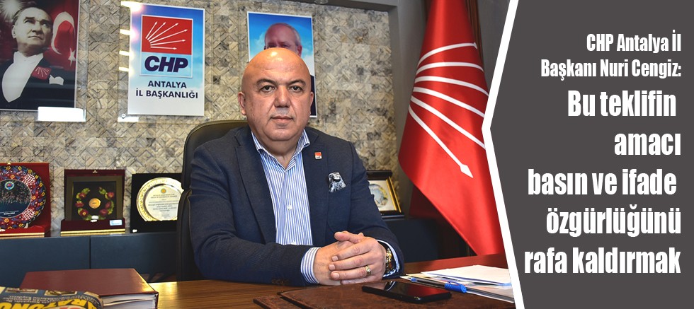 CHP Antalya İl Başkanı Nuri Cengiz Torba kanunla TBMM Başkanlığı’na sunulan internet medyası ve sosyal medya ile ilgili düzenlemeleri içeren kanun teklifini yazılı bir açıklama yaparak sert bir dille eleştirdi.