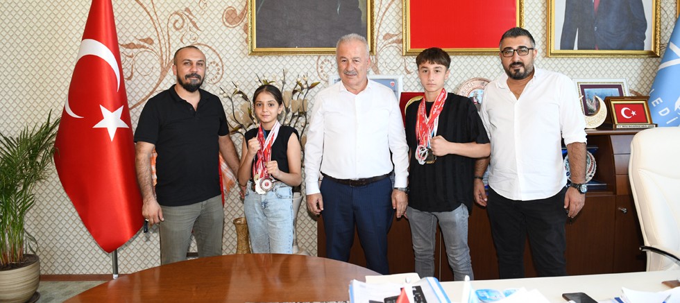 Dünya şampiyonasına gitmeden önce çocukları ağırlayan Başkan Şahin elde ettikleri başarılardan dolayı her ikisini de kutlarken, Dünya Şampiyonasında da madalya alacaklarına inancının tam olduğunu aktardı.