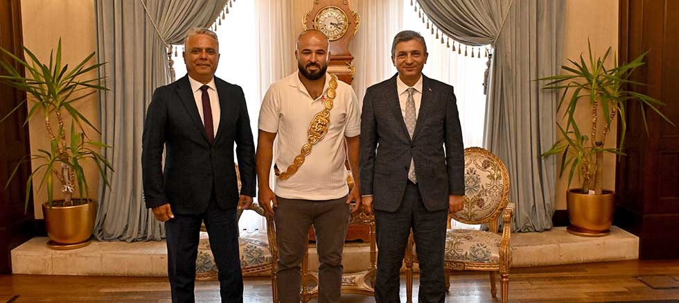 Tarihi Kırkpınar Yağlı Güreşleri’nin 664’üncü yılında altın kemeri Antalya’ya getiren “Paşanın Aslanı” Orhan Okulu, Antalya Valisi Hulusi Şahin’i makamında ziyaret etti.