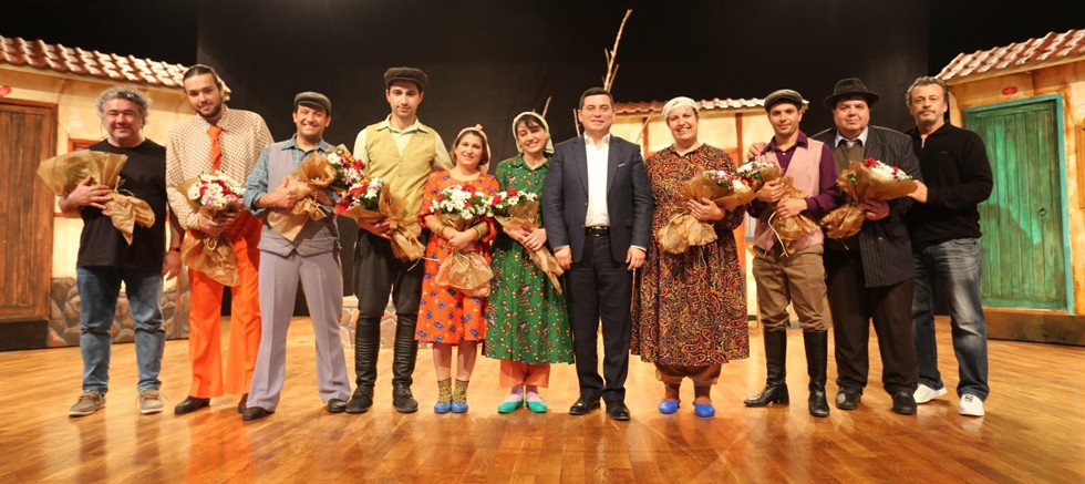 Oyunun sonunda sahneye çıkarak tüm oyuncuları kutlayan Başkan Tütüncü, oyunu çok beğendiğini söyledi. Oyunun yönetmeni Özge Efe’yi ayrıca kutlayan Tütüncü, “Özge hanım, tiyatroya gönül vermiş bir kardeşimiz. Ama bunun ötesinde çok farklı bir özelliği var, Türkiye’de çok tiyatro var, ancak kadın tiyatro yönetmeni çok az. Kadının elinin değdiği her yer güzel oluyor.” dedi.