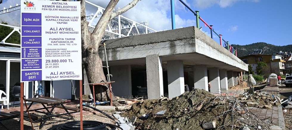 Kemer Belediye Başkanı Necati Topaloğlu'nun “Her mahalleye bir kapalı pazar yeri” projesi kapsamında Göynük Mahallesi'nde yapımı hızla devam eden kapalı pazar yerinde çalışmalar tamamlanmak üzere.