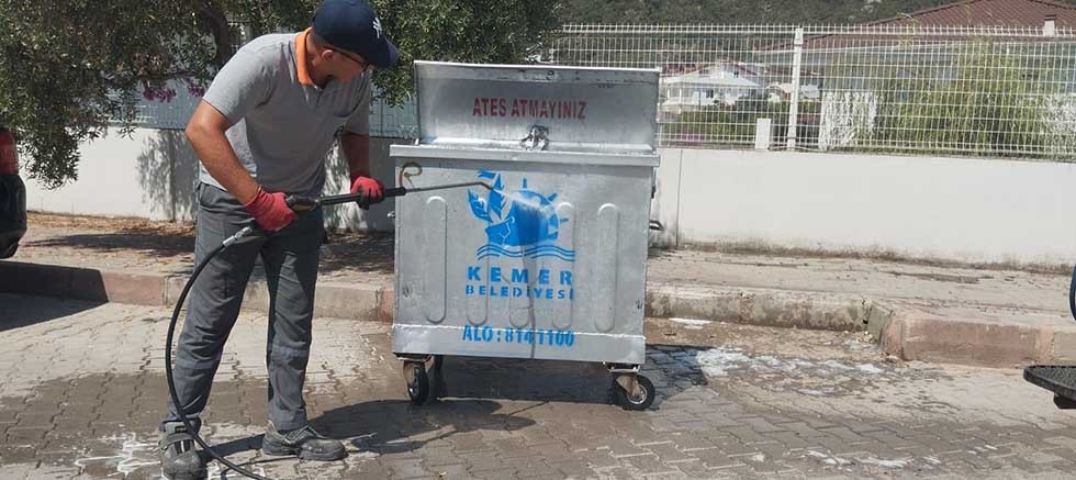 Kemer Belediyesi Temizlik İşleri Müdürlüğü ekipleri, Kemer genelinde bulunan çöp konteynerlerini sıcak ve ilaçlı suyla yıkayarak dezenfekte ediyor. Kemer Belediye Başkan Yardımcısı Semih Top, Kemer genelinde 3200 çöp konteyneri olduğuna dikkat çekerek, belediye ekiplerinin günde yaklaşık 80 konteyneri temizlediğini söyledi.