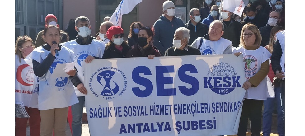 Sağlık emekçileri adına açıklama yapan Sağlık ve Sosyal Hizmet Emekçileri Sendikası (SES) Antalya Şubesi Eş Başkanı Şükran İçöz şunları söyledi;