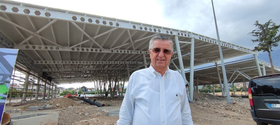 Kemer Belediye Başkanı Necati Topaloğlu, Arslanbucak Mahallesinde yapımı devam eden kapalı pazar yerindeki çalışmaları yerinde inceledi.