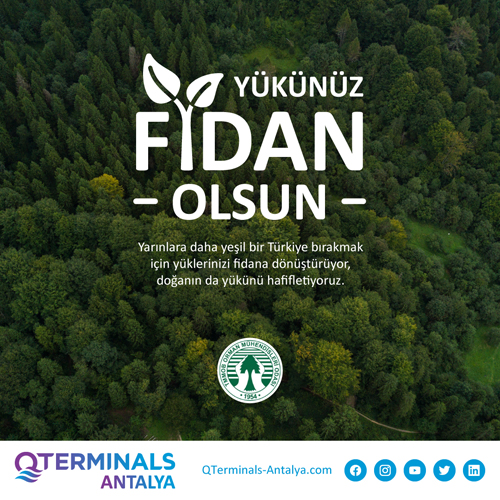 Önemli bir ticaret noktası olan Antalya'nın doğal güzellikleri ile Türkiye'nin önemli turizm merkezlerinden biri olduğunu ve doğal kaynakların korunmasının çok önemli olduğunu belirten QTerminals Antalya Genel Müdürü Özgür Sert, ‘’ Antalya’da orman varlılığının artırılması ile ilgili de “Antalya’mızın orman alanlarını genişletmeyi önceliklerimiz arasına aldık. Bu sürece müşterilerimizi de dahil ederek daha hızlı ve daha büyük bir yeşil alan oluşturma gayretindeyiz. 2022 yıl sonuna kadar 10 bin fidan dikimi gerçekleştirmeyi planlıyoruz. ” şeklinde konuştu.