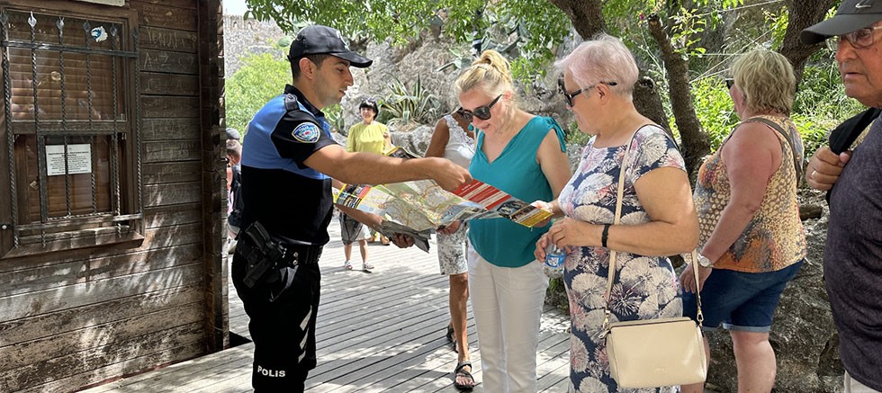 Misafirlerimiz olan turistlere, bir rehbere ihtiyaç duymadan ilçemizi gezmelerini sağlamak için içeriğinde Alanya ilçemizin tarihi, doğa ve kültürel tanıtımı, ihtiyaç duyulduğunda kamu kurum ve kuruluşlarının telefon numaraları, toplu taşıma araçlarının güzergahları ve olası hırsızlık, yankesicilik, dolandırıcılık olaylarına karşı uyarıların bulunduğu Kent Haritası, turistlerin yoğun olduğu Alanya Kalesi, İskele Bölgesi, Kızılkule, Tersane, Damlataş Mağarası, Teleferik ve Plajlarda İlçe Emniyet Müdürlüğü görevlilerimizce dağıtılmış olup, bilgilendirme çalışmalarımız devam edecektir.