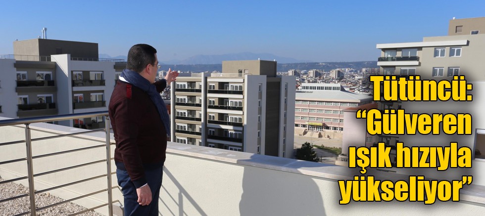 Kepez Belediye Başkanı Hakan Tütüncü, Gülveren Kentsel Dönüşüm Projesi’nin hak sahiplerine ücretsiz verilecek 317 daireli ilk etabının adeta ışık hızıyla 12 ayda yüzde 97 seviyesine ulaştığını söyledi. Tütüncü, kentsel dönüşüm projesi kapsamında yüklenici firma tarafından Gülveren’e bir de okul yapılacağını müjdeledi.