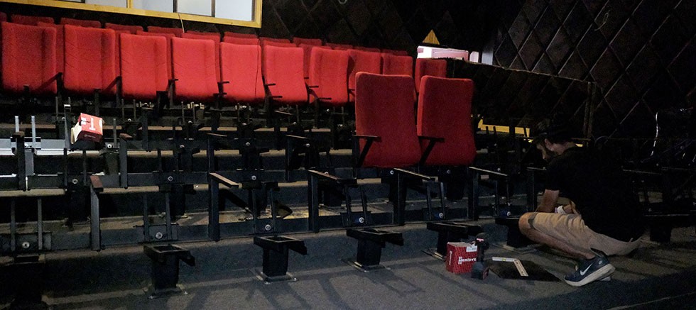 Ses yalıtım çalışmalarının ve zemin kaplama işlemlerinin tamamlandığı salonda koltukların monte işlemleri hızla gerçekleştiriliyor.