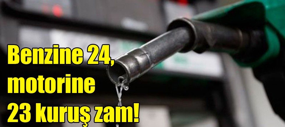 Benzinin litre fiyatına bu gece yarısından itibaren geçerli olmak üzere 24 kuruş, motorinin litre fiyatına 23 kuruş zam yapıldı.