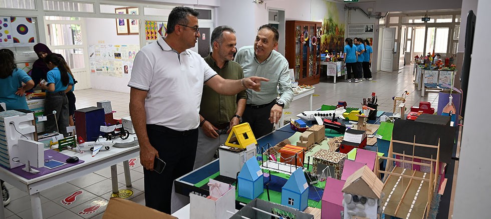 Başkan Vekili Çelik ve beraberindekiler daha sonra öğrencilerin, sıfır atık ve geri dönüşüm malzemeleri de kullanarak inovasyon, ulaşım teknolojileri, tanıtım ve pazarlama, mimari tasarım, engelsiz hayat teknolojileri ile ilgili yaptıkları sanat eserlerini inceledi.