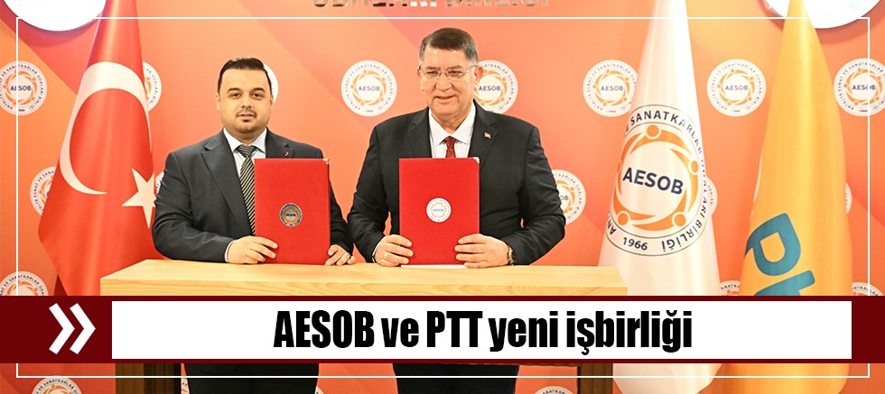 AESOB Başkanı Adlıhan Dere ve Antalya PTT Başmüdürü Sefa İnce Antalya Esnaf ve Sanatkarlar Odaları Birliği’nde bir araya gelerek AESOB ile Antalya PTT Baş Müdürlüğü arasında iş birliği protokolü imzaladı.