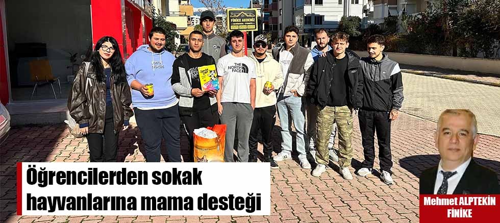 Finike MYO öğrencileri sokakta yaşayan hayvanlara mama desteği sağladı. Akdeniz Üniversitesi Finike Meslek Yüksekokulu Deniz ve Liman İşletmeciliği Bölümü 1.sınıf öğrencileri Toplumsal Duyarlılık ve Katkı dersi kapsamında sokak hayvanlarının beslenme noktalarına mama ve su bıraktılar. KIŞ GÜNÜNDE SOKAK HAYVANLARINI UNUTMAYALIM Üniversite öğrencileri Hande Açık, Emirhan Yıldırım, Sabri Bayram, Eren Şahin, Cihat İnci, Emir Efe Korkusuz, Yafes Şengün, Efe Karaçam, Bekir Samet Sezgin ve Mehmet Emin Baycan Finike’de sokak hayvanlarının besleme noktalarına kendi imkanları ile temin ettikleri mamaları bırakarak soğuk kış günlerinde onlara destek oldular. Grup adına açıklama yapan Emirhan Yıldırım;” Yaptığımız etkinlik ile sokakta bulunan hayvanlara dikkat çekmek istedik. Onlara mama getirdik. Karınlarını doyurduk” dedi.