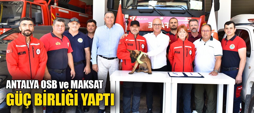 Antalya Organize Sanayi Bölge Müdürlüğü ile Maksat Arama Kurtarma ve Sosyal Aktivite Derneği arasında iş birliği protokolü imzalandı. Antalya OSB İtfaiye Müdürlüğü’nde gerçekleşen imza törenine Antalya OSB Başkanı Ali Bahar, MAKSAT Başkanı Sevim Dündar, Antalya OSB ve MAKSAT Yöneticileri, Antalya OSB İtfaiyecileri katıldı. Protokol kapsamında Antalya OSB İtfaiye Müdürlüğü, Antalya OSB Doğal Afetlere Müdahale Timi (DAMT) ve talep eden Bölge firmalarına arama kurtarma ve ilk yardım eğitimleri verilip, tam donanımlı arama-kurtarma timleri oluşturulacak.