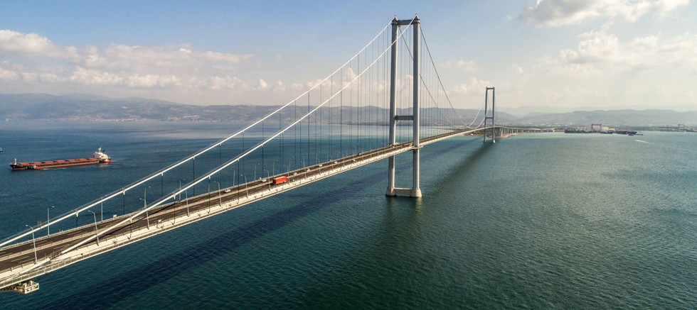 384 kilometre otoyol, 42 kilometre bağlantı yolu olmak üzere toplam 426 kilometre uzunluğundaki İstanbul-İzmir Otoyolu’nun en önemli kesimini oluşturan Osmangazi Köprüsü, 7 yaşına girdi. Dilovası ile Hersek Burnu arasında inşa edilen ve İzmit Körfezi’nin iki yakasını bağlayan köprünün toplam 2 bin 682 metre uzunluğunda, bin 550 metre orta açıklığıyla, dünyada işletmeye açık olan en büyük orta açıklıklı ‘Asma Köprüler’ sıralamasında 7’nci olan Osman Gazi Köprüsü, 1 Temmuz 2016 tarihinde tamamlanarak vatandaşların hizmetine sunuldu.