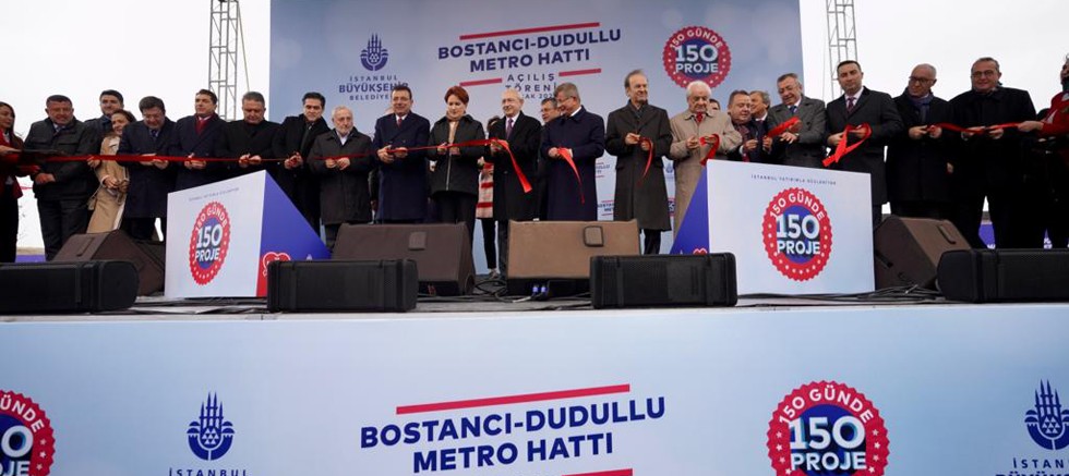 ‘150 Günde 150 Proje’ parolasıyla başlattığı hizmetler serisinin finalini, 190’ıncı hizmet ile noktalayan İBB, 1,7 milyonluk bir nüfusu barındıran, 4 ilçeden geçecek, 14,3 km uzunluğundaki, 13 istasyonlu Dudullu-Bostancı metro hattının yapımını tamamladı. Hattın açılışı; CHP Genel Başkanı Kemal Kılıçdaroğlu, İYİ Parti Genel Başkanı Meral Akşener, Gelecek Parti Genel Başkanı Ahmet Davutoğlu ve İBB Başkanı Ekrem İmamoğlu’nun katılımlarıyla gerçekleştirildi. Kılıçdaroğlu, Akşener ve Davutoğlu, konuşmalarında, yerel mahkemece hakkında hapis cezası verilen ve siyasi yasak getirilen İmamoğlu’na desteklerini vurguladı. Kılıçdaroğlu,, “İstanbullunun, 16 milyon insanın iradesine darbe vurulduğu zaman, hep beraber, birlikte karşı çıkmak zorundayız. Görüşümüz, inancımız, kimliğimiz ne olursa olsun, birlikte mücadele etmek zorundayız. O nedenle söylüyoruz; Ekrem İmamoğlu'nun kılını dahi teslim etmeyeceğiz” derken, Akşener, “Altılı Masa’nın tamamı arkanda. Çünkü, seni verirsek Muhittin Böcek'i de vermiş oluruz. Seni verirsek, Ankara'yı vermiş oluruz. Seni verirsek, bunlara Türkiye'nin geleceğini vermiş oluruz. Dolayısıyla Atatürk'ümüzün dediği gibi, ‘Geldikleri gibi gidecekler’ inşallah” ifadelerini kullandı. Davutoğlu da “Altılı Masa olarak, milli iradenin arkasında, milli iradeye karşı olanların dimdik karşısında olacağız. Ve bu yolla bize 2023 seçimleri üzerinden mesaj vermek isteniyor ve deniyorsa ki; ‘Öyle hamleler yaparız ki, sizin iradenize ipotek koyarız.’ İşte buradan söylüyoruz: Asla ipotek koyamayacak ve 2023’ün demokrasi yılı olmasına asla engel olamayacaksınız” şeklinde konuştu. İmamoğlu ise duygularını, “Artık şunu öğrenecekler: Milletin seçtiğini, ancak millet değiştirir! Kıymetli Genel Başkanlarımın huzurunda haykırıyorum; ‘İstanbul için adalet, Türkiye için adalet…’ sözleriyle dile getirdi.