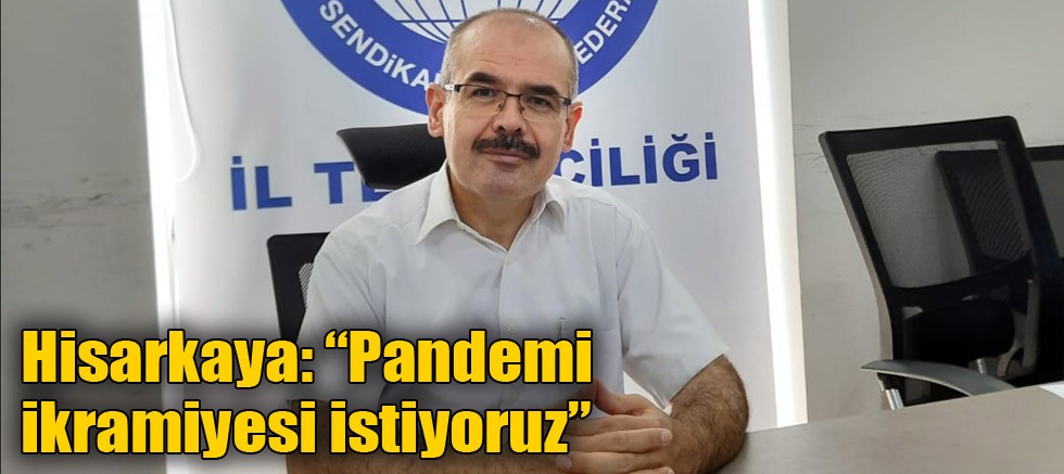 Başkan Hisarkaya, “Sadece ülkemiz değil, dünya olarak zorlu bir süreçten geçiyoruz. Domino etkisi ile bir kişiden, binlerce kişiye bulaşan bu hastalık tüm yaşam tarzımızı değiştirdi ve yeni kurallarla ‘yeni normal’ adı altında farklı yaşam tarzlarına sebep oldu. Bu süreç hayatın her alanında etkisini gösterdiği gibi kamu sektöründe de çok fazla hissedildi. Çünkü devlet işleyişinin çarkları kamu görevlileri üzerinden işler. Vatandaşa karşı devletin görünen yüzü kamu görevlileridir. Bu yüzden kurumlar, fiziksel çalışma ortamı sebebiyle COVID-19 hastalığına karşı yakalanma riskinin yüksek olduğu alanlar haline gelmektedir. Bu alanlarda alınan önlemleri görüyoruz, bazı noktalarda önlemlerin yeterli olmadığını görüyor ve maske-dezenfektan gibi ihtiyaçların yanı sıra; esnek çalışma saatleri ve genelgelerle kısıtlama getirilen saatler arasında mesailerin düzenlenmesini istiyoruz” ifadelerini kullandı.