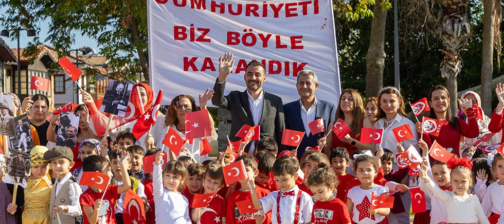 Manavgat’ta 29 Ekim Cumhuriyet Bayramı dolayısıyla düzenlenen etkinlikte, Manavgat Belediyesi Side Kreş ve Gündüz Bakımevi öğrencileri, “Cumhuriyet ilan edildi” manşetli sembolik gazeteleriyle Antik Side sokaklarında vatandaşlara Cumhuriyet coşkusunu yaşattı.