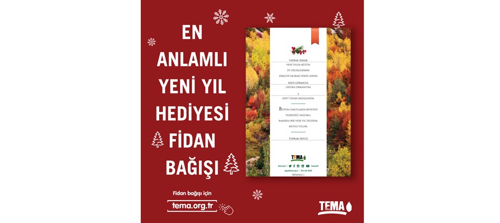 En değerli hediyenin yaşanabilir bir gelecek olduğu bilinciyle çalışan TEMA Vakfı, fidan bağışlarıyla yeni yıla yeşil bir başlangıç yapmanıza vesile oluyor. İyiliğin, umudun, bilginin ve sevginin paylaşarak çoğalacağına inanan TEMA Vakfı, yeni yıl için bireyleri ve kurumları fidan bağışı yapmaya çağırıyor.