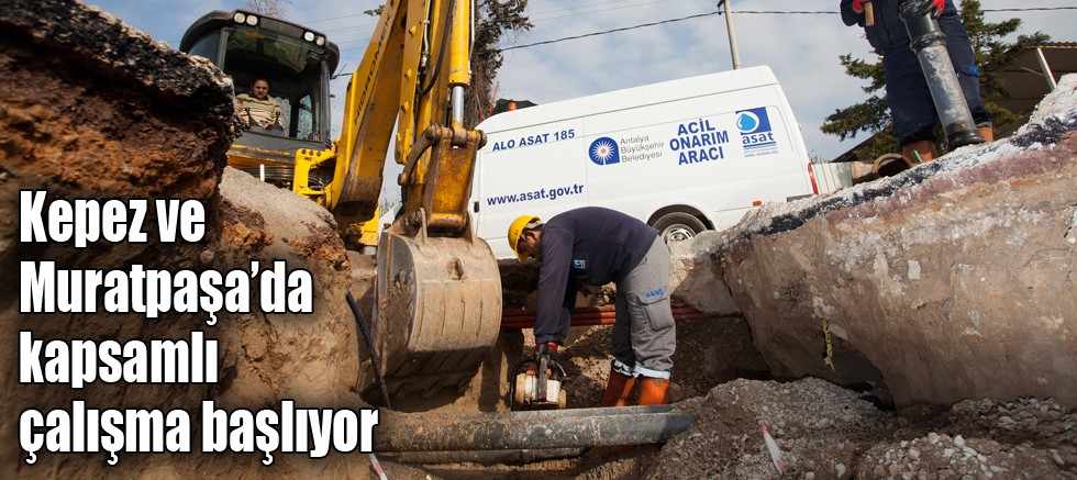 Büyükşehir Belediyesi ASAT Genel Müdürlüğü tarafından Kepez ve Muratpaşa ilçelerinde başlatılacak kapsamlı çalışma ile eskiyen hatlarda meydana gelen arızaların minimuma indirilmesi, vatandaşlara daha sağlıklı ve verimli içme suyu hizmetinin sağlanması hedefleniyor. Bu amaçla iki ilçede eskimiş boru hatları yenilenecek, abone bağlantıları yapılacak, ana sayaçlar takılacak. Çalışma bittiğinde bozulan yollar asfaltlanacak.