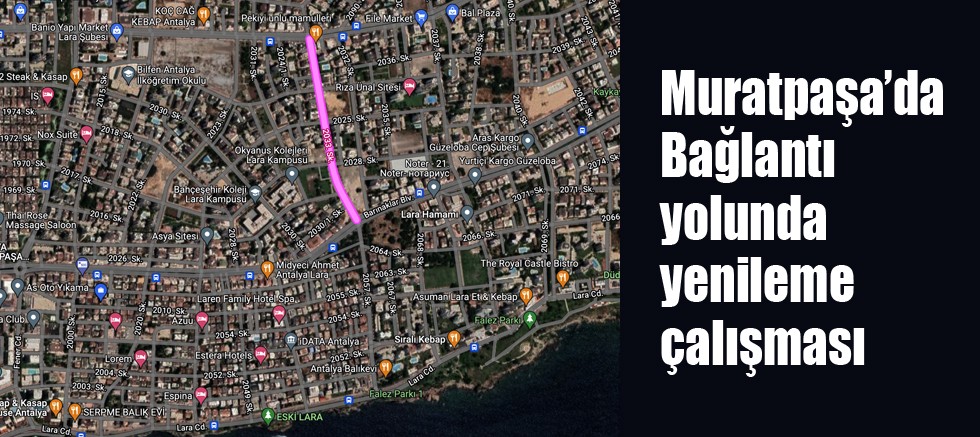 Antalya’nın Bülent Ecevit Bulvarı ve Barınaklar Bulvarı’nı birbirine bağlayan Çağlayan Mahallesi 2033 Sokak’ta Muratpaşa Belediyesi’nin asfalt çalışmaları dolayasıyla 14 Kasım Pazartesi’den itibaren taşıt trafiği kontrollü olarak sağlanacak.