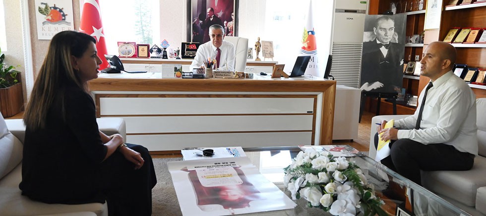 Türk Kızılayı Antalya Kan Bağışı Merkezi kan bağışçısı kazanım uzmanı Gülşah Alpova Kemer Belediye Başkanı Necati Topaloğlu'nu ziyaret etti.
