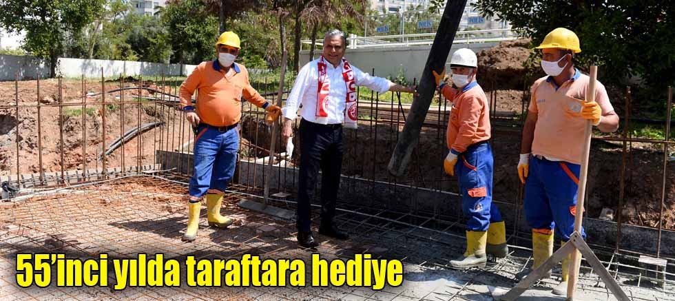 Pandemi dolayısıyla maçlarını seyircisiz oynayan Antalyaspor’u her koşulda destekleyen taraftarı için Muratpaşa Belediyesi’nin nisan ayında temelini attığı lokal inşaatı devam ediyor. Bu yıl kuruluşunun 55’inci yılını kutlayan kırmızı beyazlı takımın taraftar lokali, 120 metrekarelik alanda tek kat olarak projelendirildi. İnşaatını Park ve Bahçeler Müdürlüğü’nün gerçekleştirdiği lokal, takımın maçlarını oynadığı Antalya Stadyumu'nun yanı başında yer alıyor.