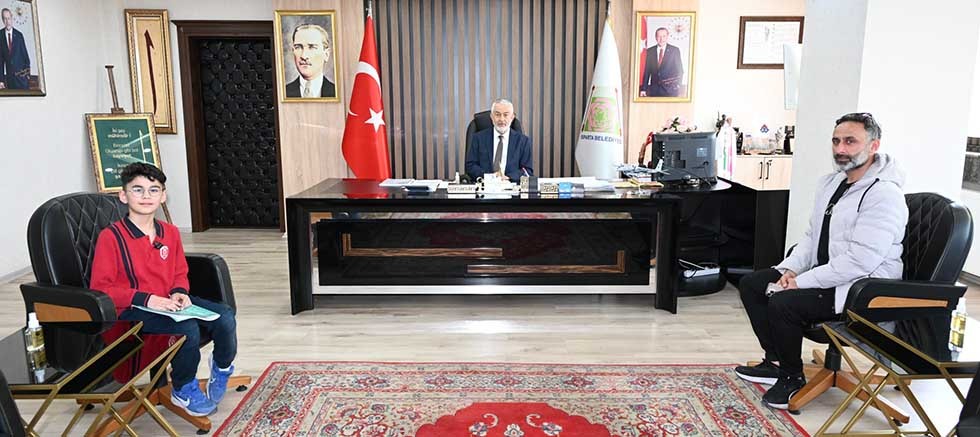 Ülkü İlkokulu 3. sınıf öğrencisi Tuğra Şahintürk, Hayat Bilgisi ödevi için bir yöneticiye sorması gereken soruları sormak üzere Belediye Başkanı Şükrü Başdeğirmen’i ziyaret etti. Tuğra, önceden hazırladığı soruları Başkan Başdeğirmen’e yöneltirken, Başkan Başdeğirmen de her soruya içtenlikle yanıt verdi.