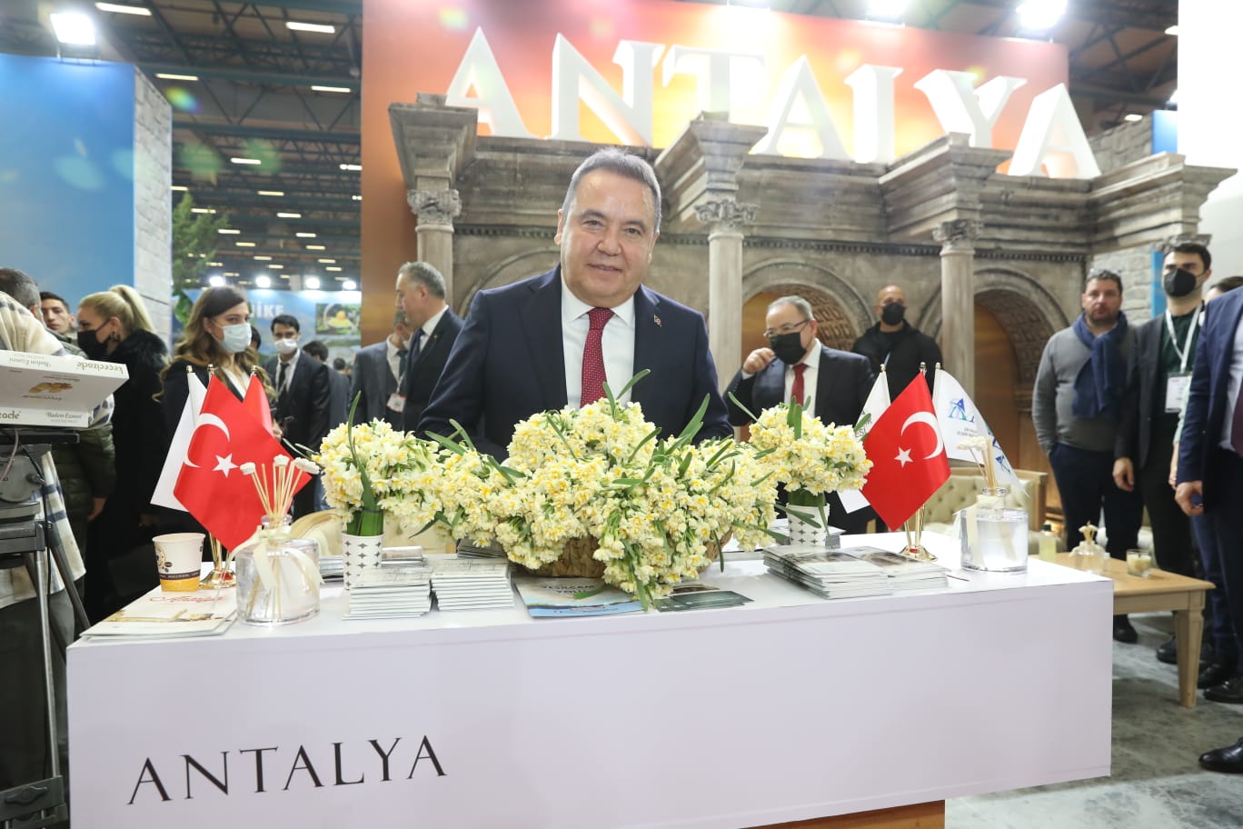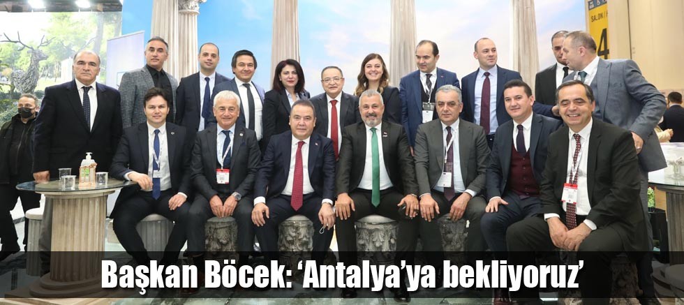 Antalya Büyükşehir Belediye Başkanı Muhittin Böcek, İstanbul’da bu yıl 25’ncisi düzenlenen dünyanın en büyük turizm fuarlarından biri olan Doğu Akdeniz Uluslararası Turizm ve Seyahat Fuarı'na (EMITT) katıldı. 12 ilçesiyle birlikte fuarda yer alan Antalya standı ziyaretçilerden yoğun ilgi görüyor. Antalya standında ziyaretçileri ağırlayan Başkan Böcek, dünyaya ‘Antalya’ya gelin bekliyoruz. Biz hazırız’ daveti yaptı.
