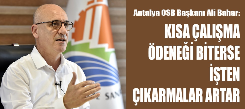 Antalya OSB Başkanı Ali Bahar, Ağustos ayı sonunda bitecek kısa çalışma ödeneği uygulamasının uzatılmaması halinde, işten çıkarmalar ile ilgili çok ciddi bir yüzleşme ile karşı karşıya kalınabileceği uyarısında bulundu.