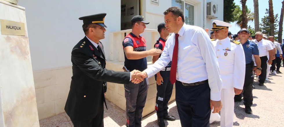 Konuşmaların ardından protokol üyeleri, İlçe Jandarma Komutanlığı, Emniyet Müdürlüğü ve Sahil Güvenlik Bot Komutanlığını ziyaret ederek, personelle bayramlaştı.